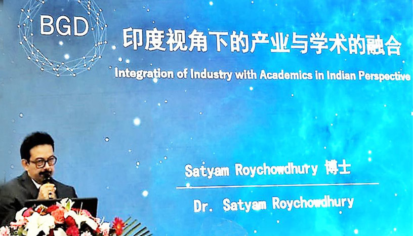 Hon'ble Chancellor of Sister Nivedita University & Managing Director of Techno India Group, Satyam Roychowdhury speaks about the Integration of Industry with Academics in Indian Perspective at the Gengdan International Educational Innovation Forum, 2019 in Beijing, China